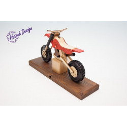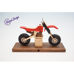 27 x8 x 16cm ; dieses Model ist einem Crossmotorrad nachempfunden. Beim Training auf unseren Crossstrecke in Seiffen kam unser Streckenwart auf die Idee, dass ich doch mal ein Motorrad machen sollte was raucht. Gesagt getan! Von da ab entwickelte ich das Crossmotorrad. Nun gibt es schon mehr als 7 verschiedene Typen. Aus eigener Produktion, hergestellt in der kleinsten Zweiradschmiede Sachsens, mitten im Herzen des Erzgebirges, im Spielzeugdorf Seiffen. Auf dem Holzweg Richtung Highway? .... nun..., lassen wir es doch auf einen Versuch ankommen! Um Bikerträume ins Wohnzimmer zu holen, sollte man das traditionelle erzgebirgische Kunstgewerbe nicht gleich vergessen aber auch ein gewisses Maß an verrückter Kreativität besitzen.